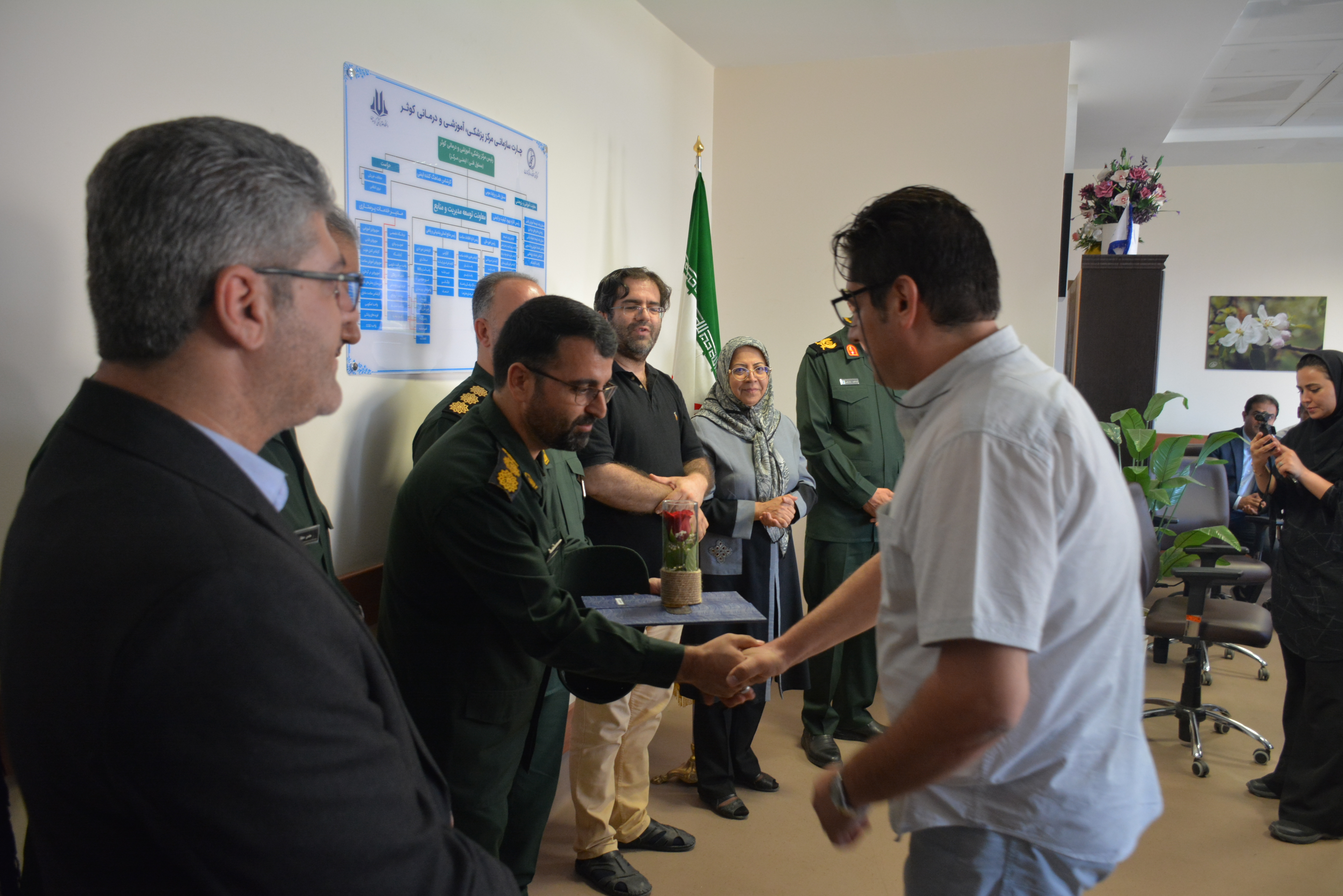 به گزارش روابط عمومی مرکز، به مناسبت فرا رسیدن یکم شهریور ماه ، زادروز دانشمند بزرگ و طبیب برجسته ایرانی، شیخ الرئیس ابوعلی سینا و روز پزشک، سردار جمشید رضایی فرمانده سپاه بیت المقدس استان کردستان و هیأت همراه، دکتر شعله شاه غیبی رئیس دانشگاه، معاون درمان و مدیر روابط عمومی دانشگاه جهت تبریک این روز در مرکز حضور یافتند.