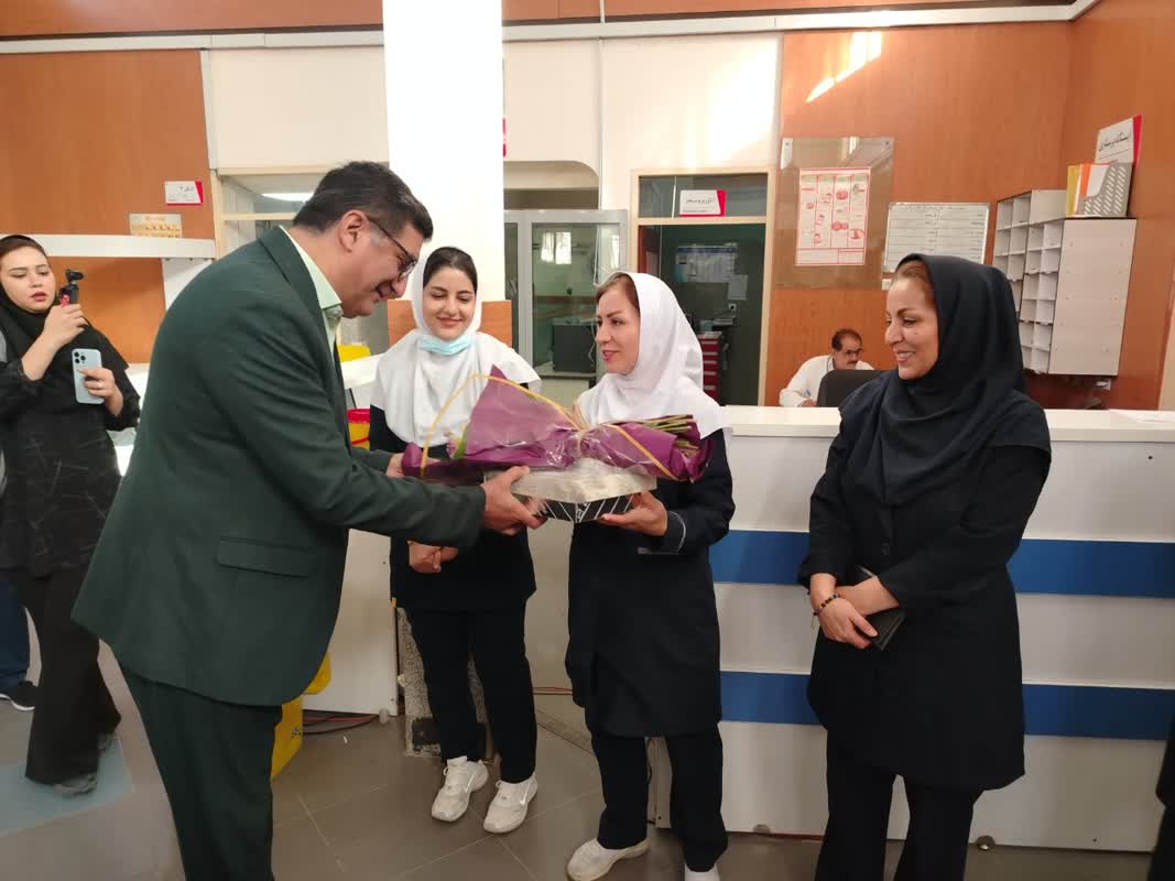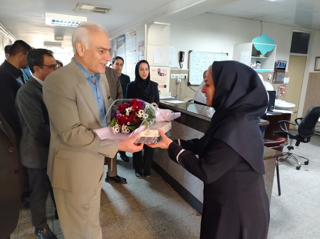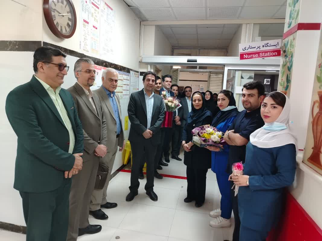 در این مراسم که رئیس بیمارستان، دکتر محمد مرادی به همراه تیم مدیریتی و اعضای هیئت رئیسه حاضر، از نزدیک با پرستاران بخشهای مختلف این بیمارستان دیدار کردند و از تکتک زحمات و مهرافزونیهای پرستاران این مرکز تقدیر و تشکر کردند.